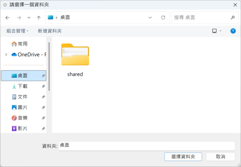 (2) 點選在「資料夾」欄位右方的「瀏覽」按鈕,可以開啟作業系統的資料夾選擇畫面(以Windows系統為例):
