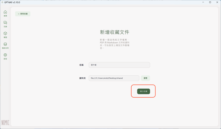 對GPT4All的使用和設定方式較為熟悉之後,就可以將參考資料夾移到平常工作習慣的路徑,不必再重複複製。