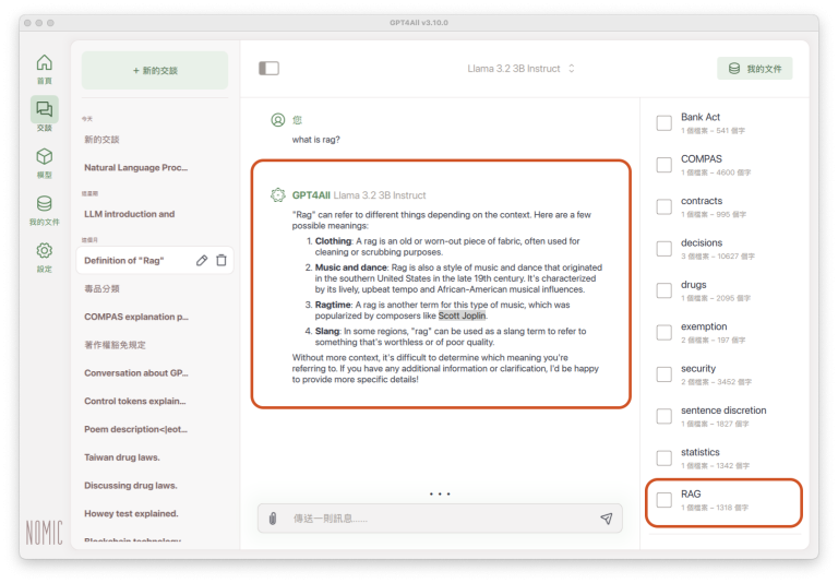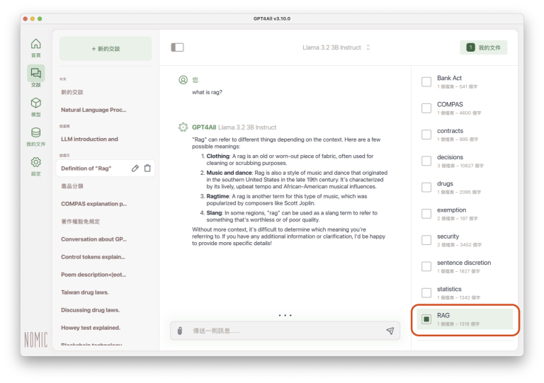 前文介紹了GPT4All 的下載、安裝、以及大型語言模型(LLM)的下載說明,本文將簡介GPT4All的基本操作方式、以及GPT4All本機端RAG的使用方式。