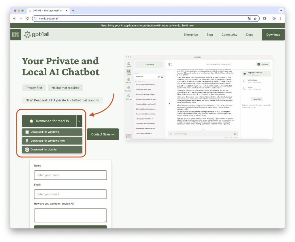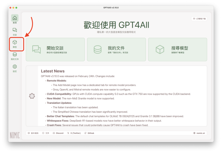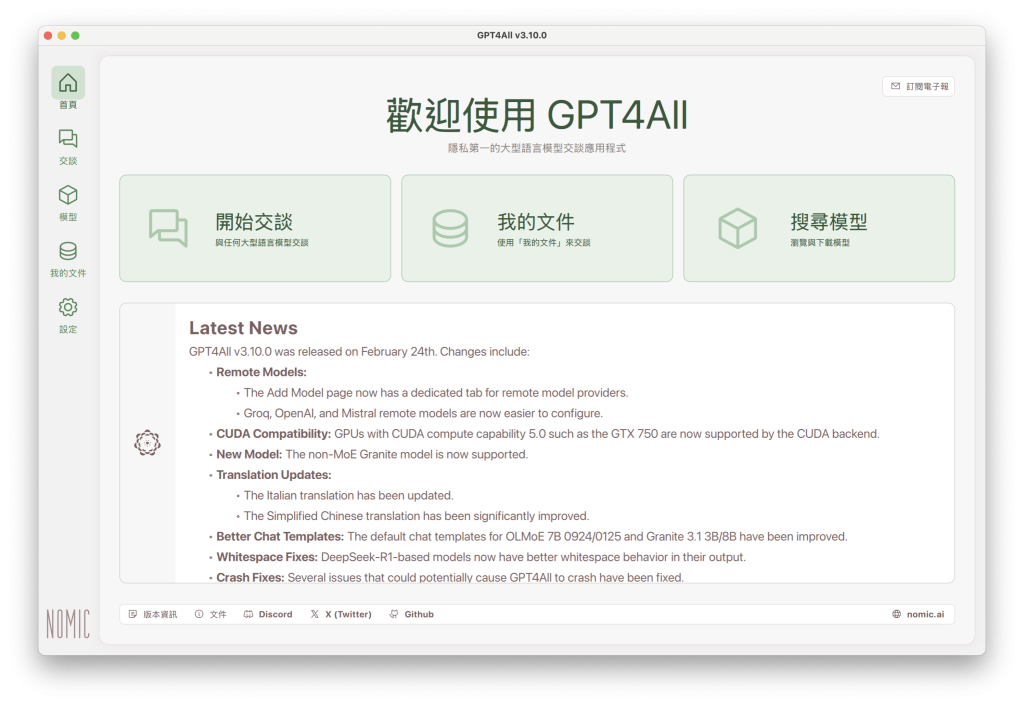 GPT4All 支援 Windows、macOS、Linux (Ubuntu),也內建繁體中文介面,使用者可以依照自己電腦的作業系統下載相應的版本