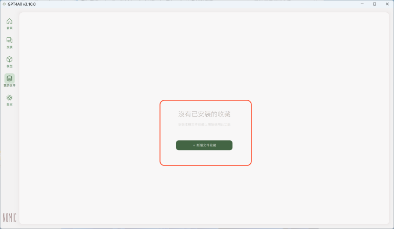 在GPT4All軟體首頁,點選正中央的「我的文件」(LocalDocs)、或左方側邊欄的「我的文件」: