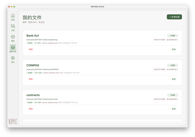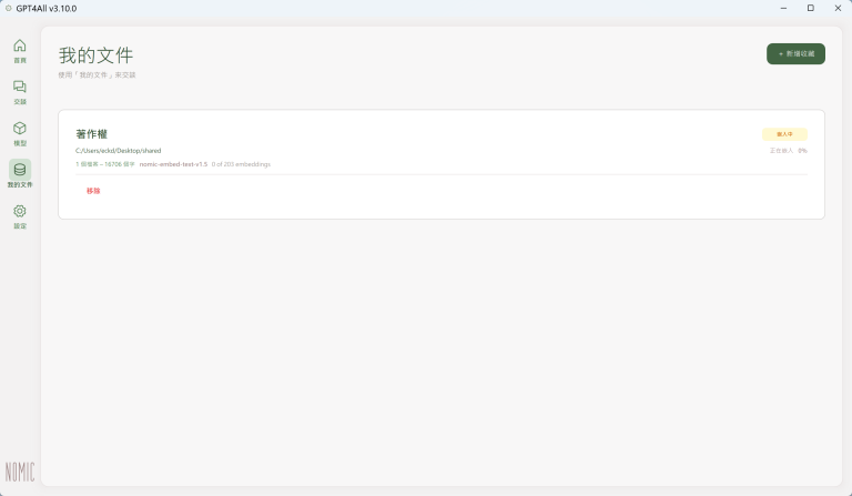 對GPT4All的使用和設定方式較為熟悉之後,就可以將參考資料夾移到平常工作習慣的路徑,不必再重複複製。