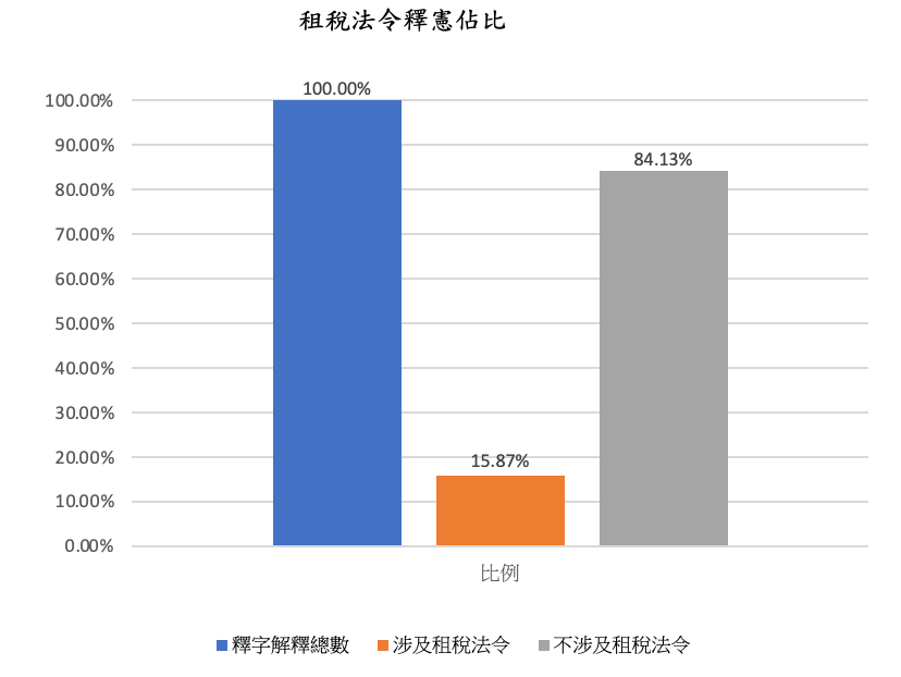 - 稅捐事件佔全部釋憲案例的比例